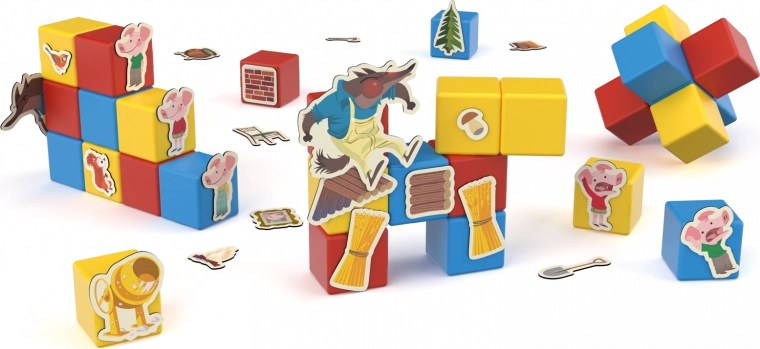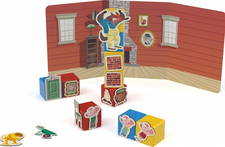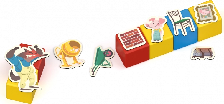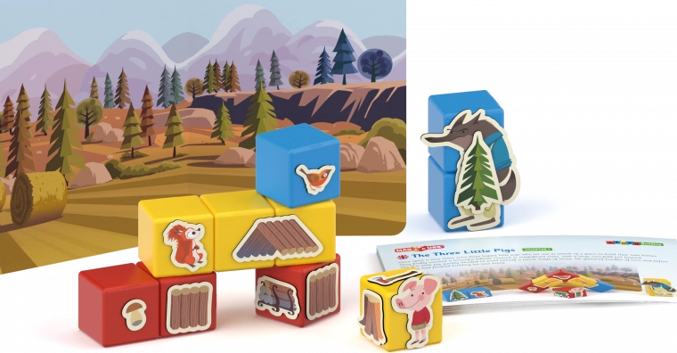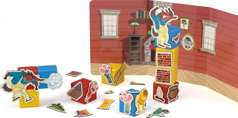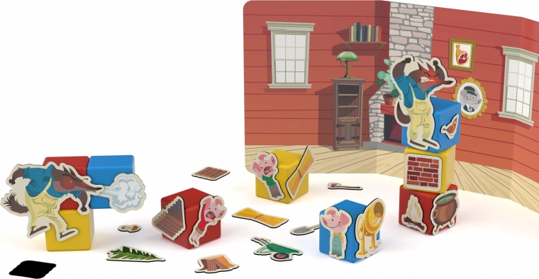 - Storytelling-sæt – klips med motiver fra eventyret De tre små grise.