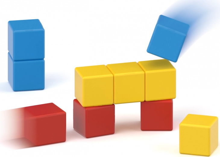 Hver klods fastgøres fra enhver side takket være den indre konstruktion. Børn bygger hurtigt stabile former uden frustration og med lyst til at skabe.