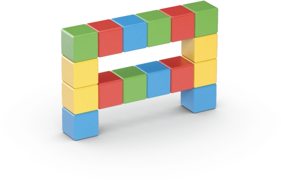 Af 16 klodser kan du bygge simple figurer, dyr og fantastiske former. Legen udvikler naturligt fantasien og den logiske tænkning.
