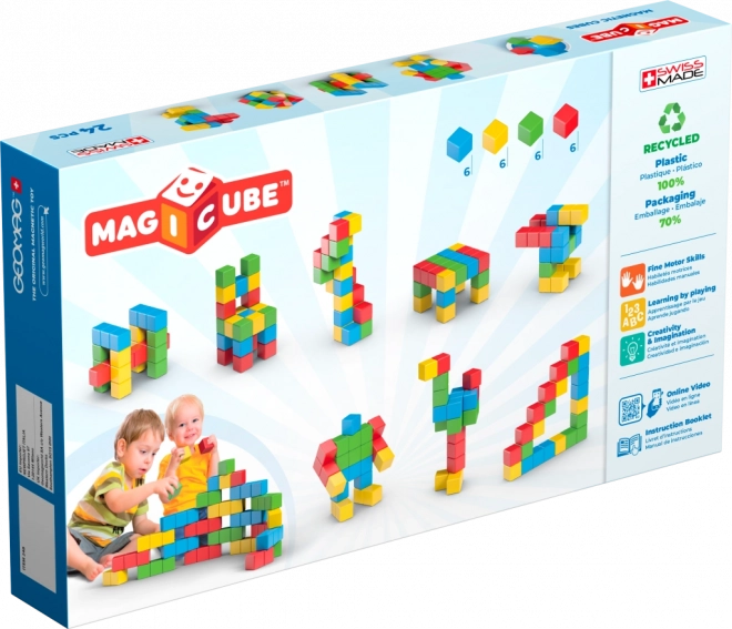 Opdag en kreativ verden med det magnetiske byggesæt Geomag Magicube Creative. Takket være den særlige konstruktion tiltrækker klodserne hinanden fra alle seks sider og muliggør 3D-byggeri samt fri konstruktion i rummet. Sættet indeholder 24 farverige klodser og er velegnet fra 1 år – ideelt til at udvikle fantasi, finmotorik og koordination.