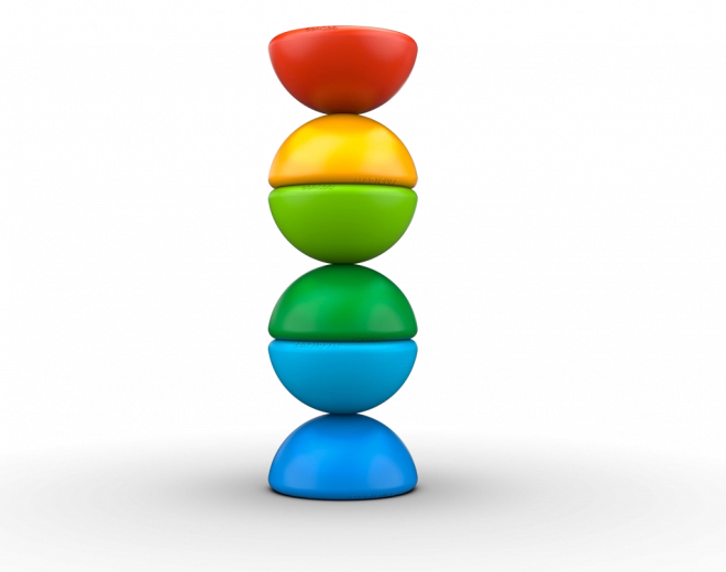 De magnetiske halvkugler Geomag Magicube Stacking er ideelle til de første tårne og enkle former. Den lette sammensætning ved hjælp af magneter motiverer børn til at udforske, sortere farver og udvikle finmotorik samt rumlig forestillingsevne. Den sikre udformning er tilpasset små børnehænder.