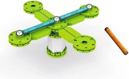 Takket være den modulære konstruktion kan man bygge flere varianter af modellen og trin for trin observere, hvordan tiltrækning og frastødning af magneter udløser mekanisk bevægelse. Sættet er lavet af 100% genanvendt plast og er ideelt til hjemmeeksperimenter og skoleprojekter.