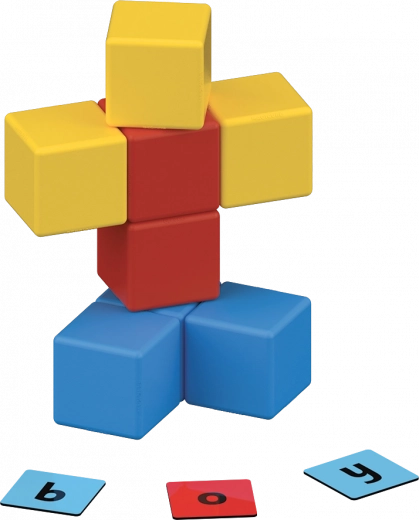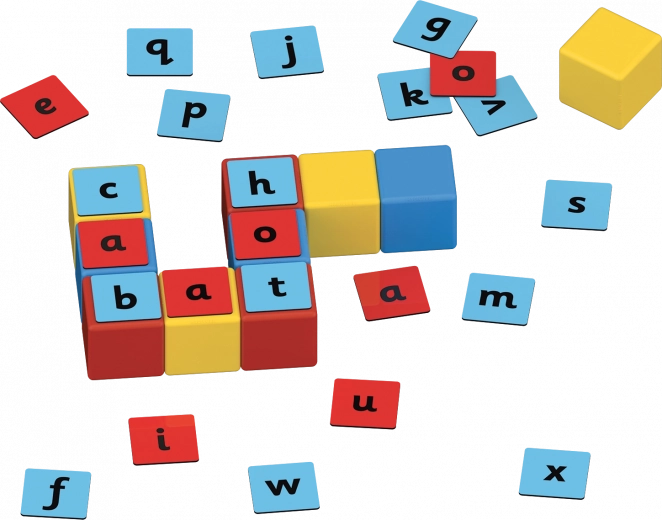 Sættet indeholder 10 magnetiske klodser af 100% genanvendt plast og 45 dobbeltsidede klips med bogstaver og billeder. Klipsene farvekoder vokaler og konsonanter, hvilket gør det lettere at læse de første ord og bygge ord. Legen udvikler kreativitet, finmotorik, logisk tænkning og stimulerer nysgerrighed ved at udforske magnetisme.
