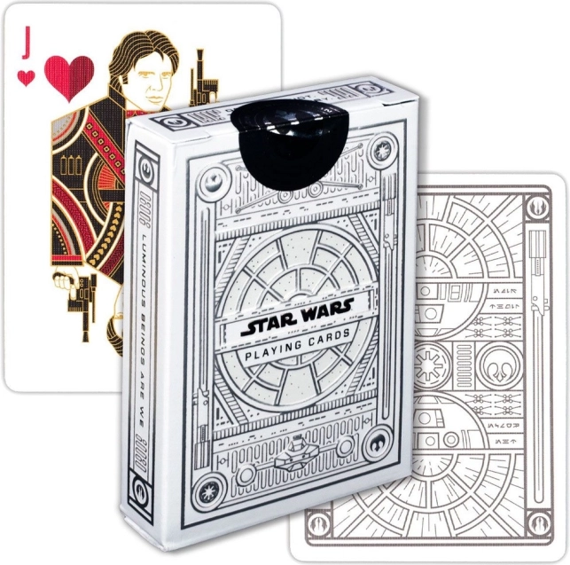 Gå ombord på Millennium Falcon og bliv en helt med Star Wars Light Side-kort fra Theory11. Denne udgave bringer ikoniske elementer som Luke Skywalkers lyssværd, R2-D2 og jagerfly fra Oprørets flåde. Hvert kort er detaljeret udført og indeholder berømte figurer som Rey, Leia Organa, Han Solo og Luke Skywalker.