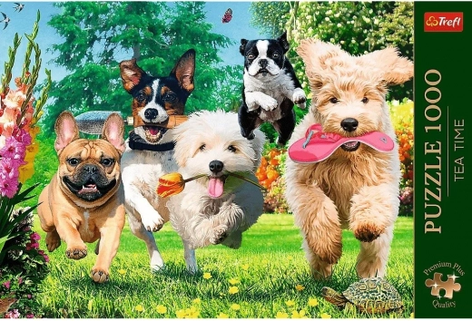 Trefl Puzzle Premium Plus Tea Time: Hundeløjer i haven 1000 brikker