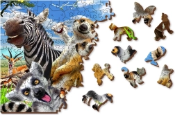WOODEN CITY tilbyder et puslespil, der skiller sig ud med sin høje behandlingskvalitet. Takket være laserudskæring er brikkerne præcist lavet, hvilket sikrer glatte kanter uden splinter. Du kan se frem til et dobbeltsidet puslespil med motiver fra afrikansk natur.