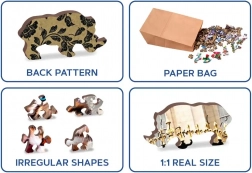 Fordyb dig i samlingen af dette unikke træpuslespil fra mærket WOODEN CITY, som tilbyder 200 brikker med højere sværhedsgrad takket være de unikt formede brikker. Hver del er præcist bearbejdet med laser, og nogle brikker er formet som dyr, kendte bygninger eller genstande, hvilket gør det muligt at bruge dem som små figurer.