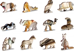 Unikke brikker, der repræsenterer dyr og genstande, bringer en ny udfordring og sjov til puslespillet.