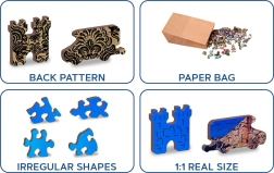 Dyk ned i den magiske verden af Santorini med dette unikke træpuslespil. Hver brik er præcist laserskåret, hvilket sikrer glatte kanter uden splinter. Puslespillet er dobbeltsidet, hvilket giver to måder at samle det på - efter billede eller form. Dette puslespil er lavet af HDF træfiberplade og pakket økologisk uden plastik.