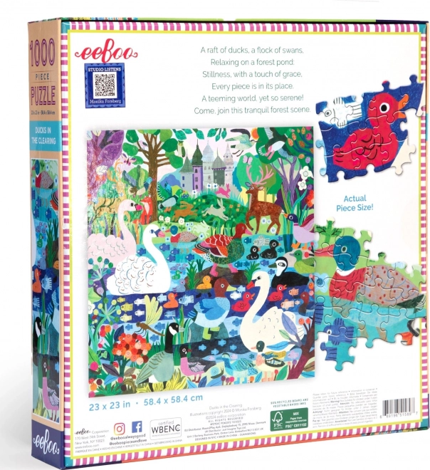 Miljøvenligt 1000-brikkers puslespil fra EEBOO, Ænder på en lysning, 58,4 x 58,4 cm. Et fremragende valg for puslespilsentusiaster.