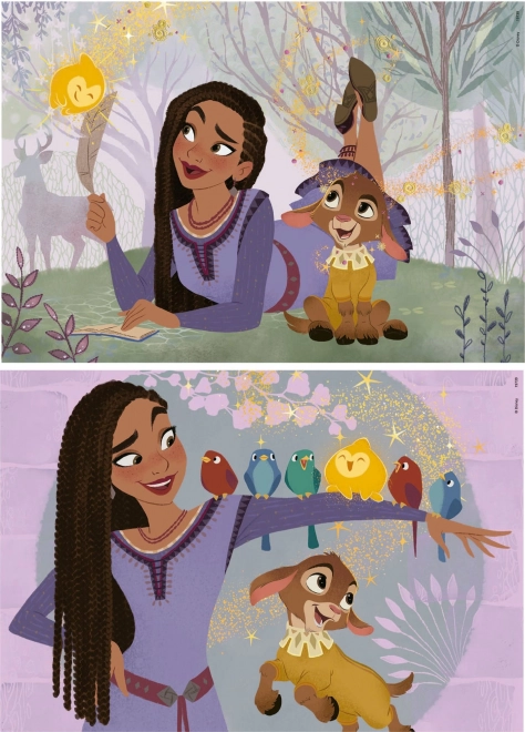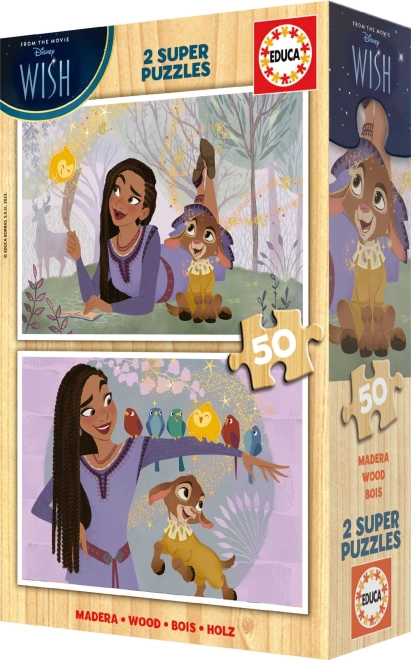 EDUCA træpuslespil Ønsker 2×50 brikker er et glimrende valg til at udvikle finmotorik, tålmodighed og koncentration. To forskellige billeder i én æske giver dobbelt så meget sjov og motiverer børn til gentagen leg. Takket være de store og solide brikker er puslespillet let at holde og samle, hvilket er ideelt for børnehænder.