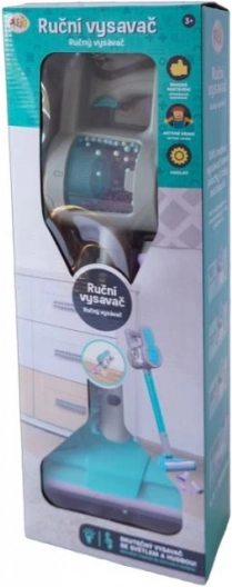 Håndstøvsuger med udskiftelige mundstykker. Støvsugeren er batteridrevet og laver en sugende lyd. Enhver husmor vil elske denne støvsuger. Den er altid lige ved hånden.