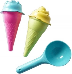 Forvandl sandkassen til en isbod! Dette søde sæt indeholder en vaffel, en iskugle og en serveringsske, så børn nemt kan lave sandkugler og hele “dessertglas”. Let at bruge støtter selvstændighed og fantasi i legen.
