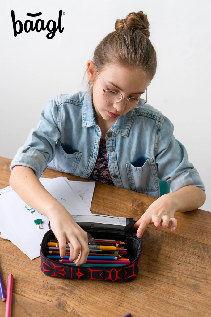 BAAGL Skolepenalhus etui Red Polygon