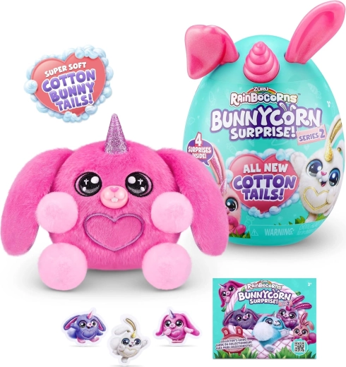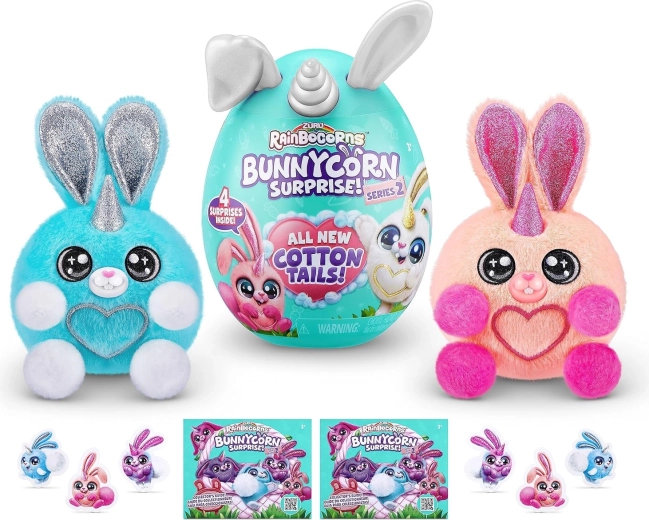 Lille, men magisk – Boo‑Boocorn kaninen fra RAINBOCORNS serien bringer børn glæden ved overraskelser og bløde kram. I hvert æg finder du en plyskanin med glitrende ører, pufhale og andre små accessories til leg og samling.