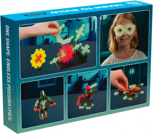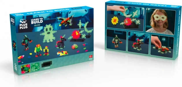 Byggesættet Plus-Plus Lær at bygge Glow-in-the-Dark kombinerer leg og læring på unik vis. Med 500 dele, hvoraf 140 lyser i halvmørke, kan børn bygge spøgelser, flagermus og figurer, samtidig med at de udvikler kreativitet og rumlig forståelse. Den enkle form gør nem sammensætning af både 2D- og 3D-modeller mulig.