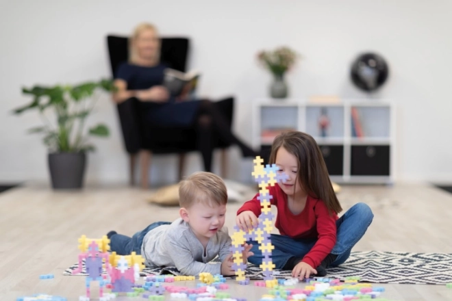 Plus-Plus BIG Pastel er et sikkert og sjovt byggesæt til de mindste, som understøtter åben leg og læring. Brikkerne i “plus”-form klikker let sammen, så børn kan skabe enkle 2D-figurer og deres første 3D-modeller. Den pastelfarvede palet er visuelt behagelig og stimulerer kreativiteten.