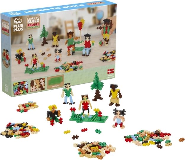 Oplev en verden af byggeri med det innovative byggelegetøj Plus-Plus Mennesker fra verdenen! Dette sæt tilbyder 275 farverige brikker, som børn kan bruge til at skabe farverige figurer og illustrere mangfoldighed på vores planet. Med de to medfølgende små basisplader er det muligt at placere og præsentere konstruktionerne lettere.