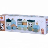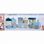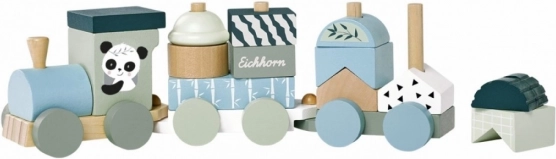 EICHHORN Panda trætog er det ideelle legetøj til de første byggeoplevelser og til at udforske former og farver. Børn kan sætte klodserne på pindene efter lyst og sammensætte deres egne vogne, hvilket understøtter kreativitet og øje‑hånd‑koordination. Det søde pandamotiv og de behagelige pastelfarver gør det til et attraktivt indslag i børneværelset.