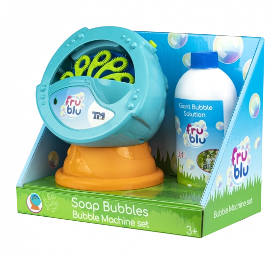 Sæt gang i festen med den automatiske boblemaskine FRU BLU: en boblemaskine, der på få øjeblikke skaber en strøm af regnbuefarvede bobler. Inkluderer 0,4 l opløsning, nem betjening og drives af 3× AA (medfølger ikke). Ideel til indendørs og udendørs brug for børn fra 3 år.