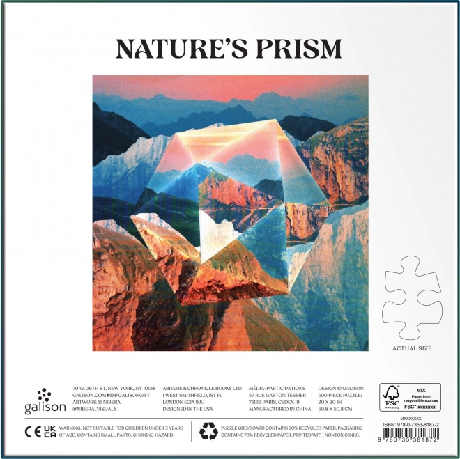 Oplev magien ved at samle Galison Puslespil Naturlig Prisma 500 Brikker. Dette fortryllende puslespil fører dig ind i en verden af farverige abstrakte bjerge og prismatiske effekter, der tilsammen skaber et unikt kunstnerisk skue.