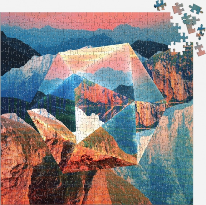 Puslespillet tilbyder et unikt design med geometriske former af bjerge og prismatiske effekter. Ideelt for enhver, der ønsker at kombinere sjov med en kunstnerisk udfordring.