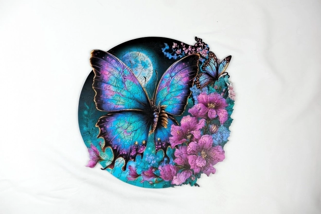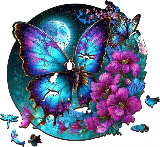 Dette runde træpuslespil med et iøjnefaldende motiv af en blå-lilla sommerfugl leverer skarpe farver takket være UV digitaltryk og omhyggeligt håndværk. Hver brik er unik, glat at røre ved og passer præcist, hvilket sikrer en behagelig og flydende læggeoplevelse. Med en diameter på 42 cm bliver det færdige puslespil en markant vægdekoration.