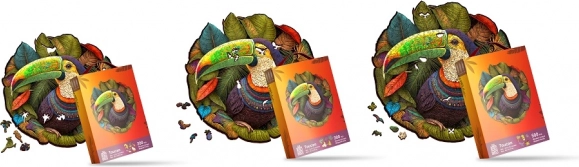 Hver brik er præcist laserskåret for perfekt nøjagtighed og glathed. Puslespillet forestiller en smuk tukan, trykt ved hjælp af moderne UV-digitaltryksteknologi, som giver virkelig levende og realistiske farver.