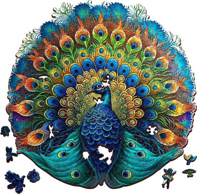 Nyd en unik oplevelse med træpuslespillet med påfuglemotiv! Hver af de 200 brikker er præcist skåret med laser og sikrer præcision og glathed. Takket være modern UV digital print teknologi, bringer puslespillet realistiske og levende farver til hver brik.