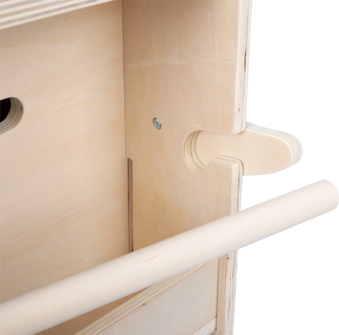 Mellem “tænderne” sidder en udtrækkelig træstang til at hænge en papirrulle på – tegneredskaberne er altid lige ved hånden, og der bevares orden.