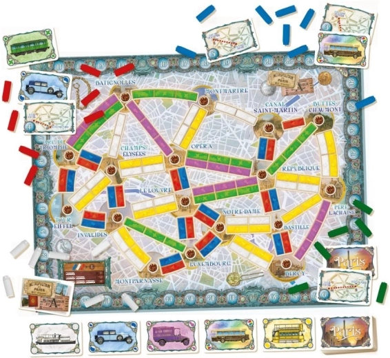I denne dynamiske fortsættelse af spillet På med toget konkurrerer spillerne om at besøge de mest berømte turiststeder i den franske hovedstad ved at bruge deres billetter. For at vinde skal vi ikke kun udnytte det voksende net af offentlig transport i Paris klogt, men også vælge forbindelser i anledning af endnu en årsdag for stormen på Bastillen.