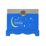 Designet med teksten “Born to Sparkle”, små stjerner og en måne virker legende og dekorativt. Takket være de kompakte mål passer smykkeskrinet på både kommode og hylde og bliver en smuk dekoration til børneværelset.