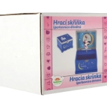Magisk spillende smykkeskrin til små pyntedukker i elegant blå. Indeni finder du et spejl og en roterende enhjørning, som ved optræk spiller en melodi. Trækonstruktion, sikker opbevaring af smykker og små skatte samt et legende design med stjerner og måne gør det til et ideelt tilbehør til børneværelset.