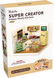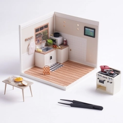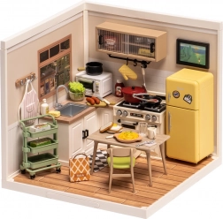 Opdag ROBOTIMEs verden af detaljerede miniaturer og skab et behageligt lille køkken i afdæmpede farver. Modellen inkluderer komfur, skabe, spisebords-møbler og små accessories, der virker naturlige og autentiske. Takket være LED-belysning fremhæves hver detalje, og dit værk bliver en pynt på hylden eller skrivebordet.