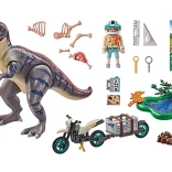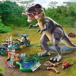 Med legesættet PLAYMOBIL Jagten på T-Rex bliver børnene taget med til dinosaurernes verden. Forskeren på motorcykel med sidevogn drager ud for at følge sporene efter T-Rex. Undervejs finder hun skeletrester og et enormt fodaftryk. Mødet med den gigantiske T-Rex er uundgåeligt. Sættet stimulerer børns fantasi og rolleleg takket være sine detaljer og bevægelige dele.
