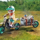 - Indeholder: PLAYMOBIL-forsker, T-Rex, motorcykel med sidevogn, vandpyt med fodaftryk, lup, kamera, kort og andet forskerudstyr.