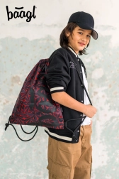 Det markante rød‑sorte mønster med geometriske former giver dit outfit kant og sikrer, at posen skiller sig ud i skolen, i byen og til træning.