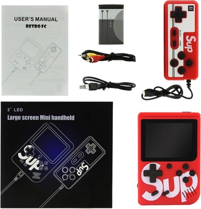 Tag tilbage til spillenes guldalder med en kompakt retro lommekonsol. Den tilbyder 400 forudinstallerede klassikere, farvet 3" LCD-skærm, indbygget højttaler og mulighed for tilslutning til TV. Med den medfølgende gamepad kan I nyde to-player spil, og den genopladelige batteripakke giver lang spilletid – ideel til både rejser og hygge derhjemme.