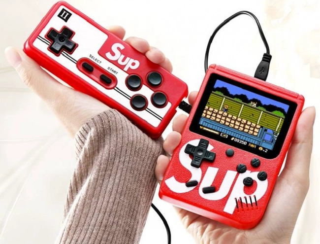 På den klare 3" farvede LCD kan du nyde favoritter som MARIO, CONTRA, PAC‑MAN, DONKEY KONG og mange flere. Takket være den medfølgende controller kan man spille to sammen – første spiller på selve konsollen, den anden på gamepadden. Opladning sker nemt via microUSB, så du slipper for batteriskift.