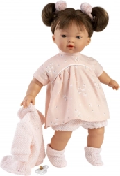 Llorens Vera er en gennemtænkt børnedukke til kærlig leg og udvikling af fantasien. Den har en blød stofkrop, ideel til at kramme, og blødgjort vinyl på hoved og lemmer med fine detaljer. Hår over hele hovedet indbyder til at blive redt og til at skabe frisurer. Når sutten fjernes, begynder den at tale (“mama”, “papa”) og græde realistisk; den magnetiske sut dæmper lydene med det samme.