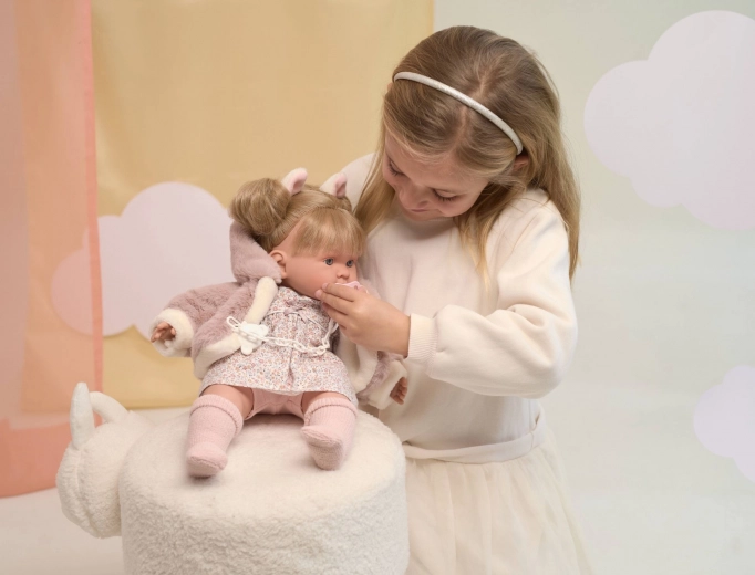 Denne 42 cm dukke er håndlavet i Spanien og leveres i en elegant gaveæske. Til dukken kan der tilkøbes originale Llorens-outfits i størrelse 42 cm, så legen altid kan være ny og kreativ.