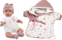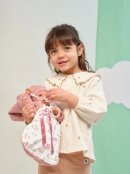 Når du trykker på maven, afgiver dukken grådelyd, hvilket understøtter empati og udvikling af børns omsorgsevner. I pakken finder du komplet udstyr til daglig pleje – fra tøj til en behagelig sovepose og en sut, så babyen altid er tilfreds.