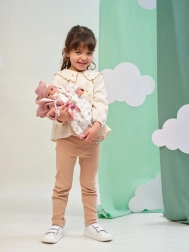 Præcise ansigtstræk, subtil skygning og smukke øjenvipper giver dukken et levende udtryk. Hver dukke er omhyggeligt fremstillet i Spanien.