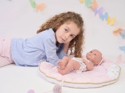 Denne realistiske dukke i størrelsen 40 cm giver børn en autentisk legeoplevelse. Håndværket sikrer præcise detaljer – fine ansigtstræk, diskret skyggeeffekt og et charmerende udtryk. Kvalitetsvinyl er behagelig at røre ved og robust til daglig leg.