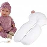 Inkluderer et firedelt sæt tøj, en blød pude og en sut med klips til at berolige babyen.