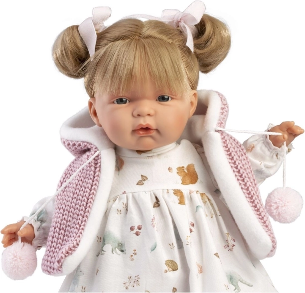 Dukken Joelle fra Llorens er indbegrebet af omhyggeligt håndværk. Let fremhævede træk, realistisk skygning og smukke øjne med vipper giver dukken et levende udtryk. Takket være den bløde mave er den dejlig at kramme og en fantastisk ledsager til daglig leg.
