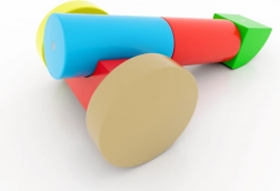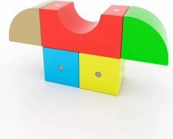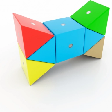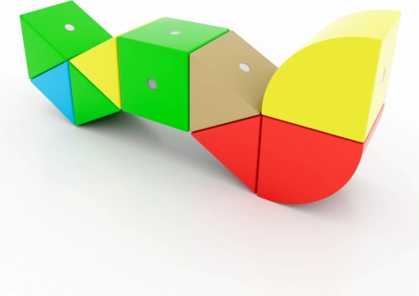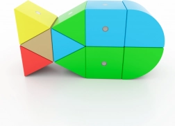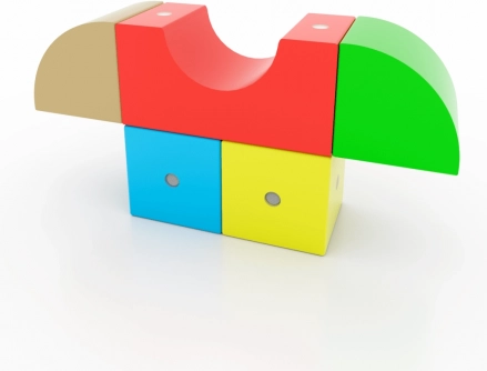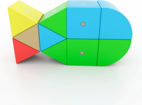 7 former og 5 markante farver inspirerer til at skabe dyr, køretøjer og abstrakte modeller. Brochuren med vejledninger hjælper med at komme i gang og udvikle fantasien.