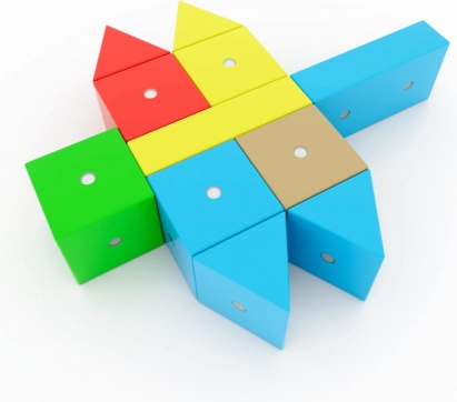 DynamicMagnet-teknologi med 76 bevægelige magneter muliggør glat samling uden frastødning af poler – bygningen er hurtig, stabil og sjov.
