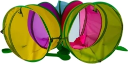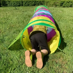 Tunnelen er lavet af slidstærk polyester med EPE-skum og en robust stålramme. Det flerfarvede design stimulerer sanserne og udvikler koordination og balance. Ideel til indendørs brug på en jævn og stabil overflade.