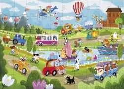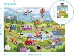 Udforsk den landlige trafik med DODO børnepuslespillet, som udvikler tålmodighed, logik og finmotorik. Den illustrerede scene fuld af detaljer underholder børn og motiverer til gentagen samling.